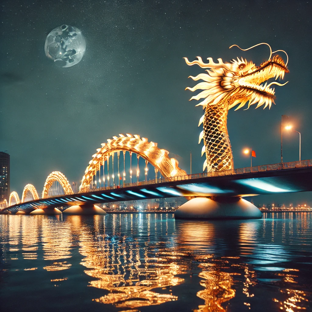 다낭의 현대적인 명소 중 하나인 용다리는 다낭 여행 중 빼놓을 수 없는 랜드마크입니다. 다낭 시내를 가로지르는 이 다리는 용의 형상을 본떠 설계되었으며, 매주 주말 저녁에는 용이 입에서 불을 내뿜는 특별한 쇼가 펼쳐집니다. 다낭 여행에서 이 독특한 야경을 감상하는 것은 매우 인상적인 경험이 될 것입니다.