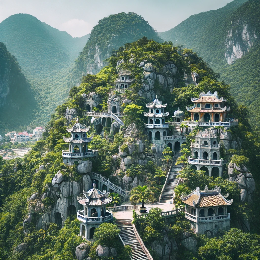 다낭 외곽에 위치한 오행산은 다낭 여행 중 역사와 자연을 동시에 경험할 수 있는 명소입니다. 오행산은 대리석과 석회암으로 이루어진 다섯 개의 봉우리가 각각 금, 목, 수, 화, 토를 상징합니다. 다낭 여행객들은 산을 따라 여러 사찰과 석굴을 탐험하며 다낭의 전통 문화와 자연 경관을 즐길 수 있습니다.